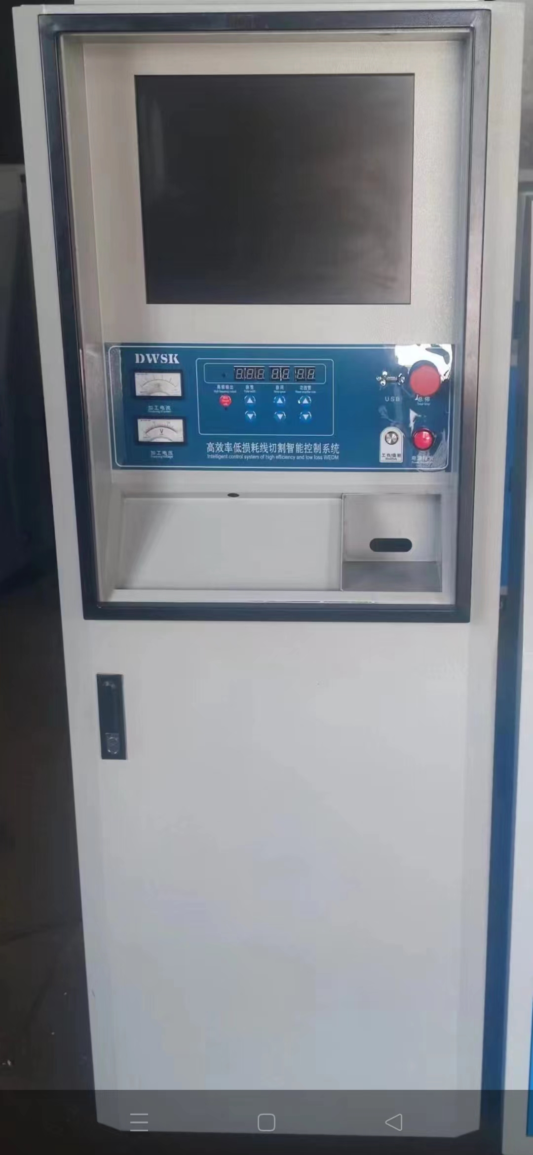 电控柜部分具有多次切割功能,采用变频技术使运丝更加稳定,工件表面光洁度提高到﹤1.5µm,加工精度到﹤0.015mm